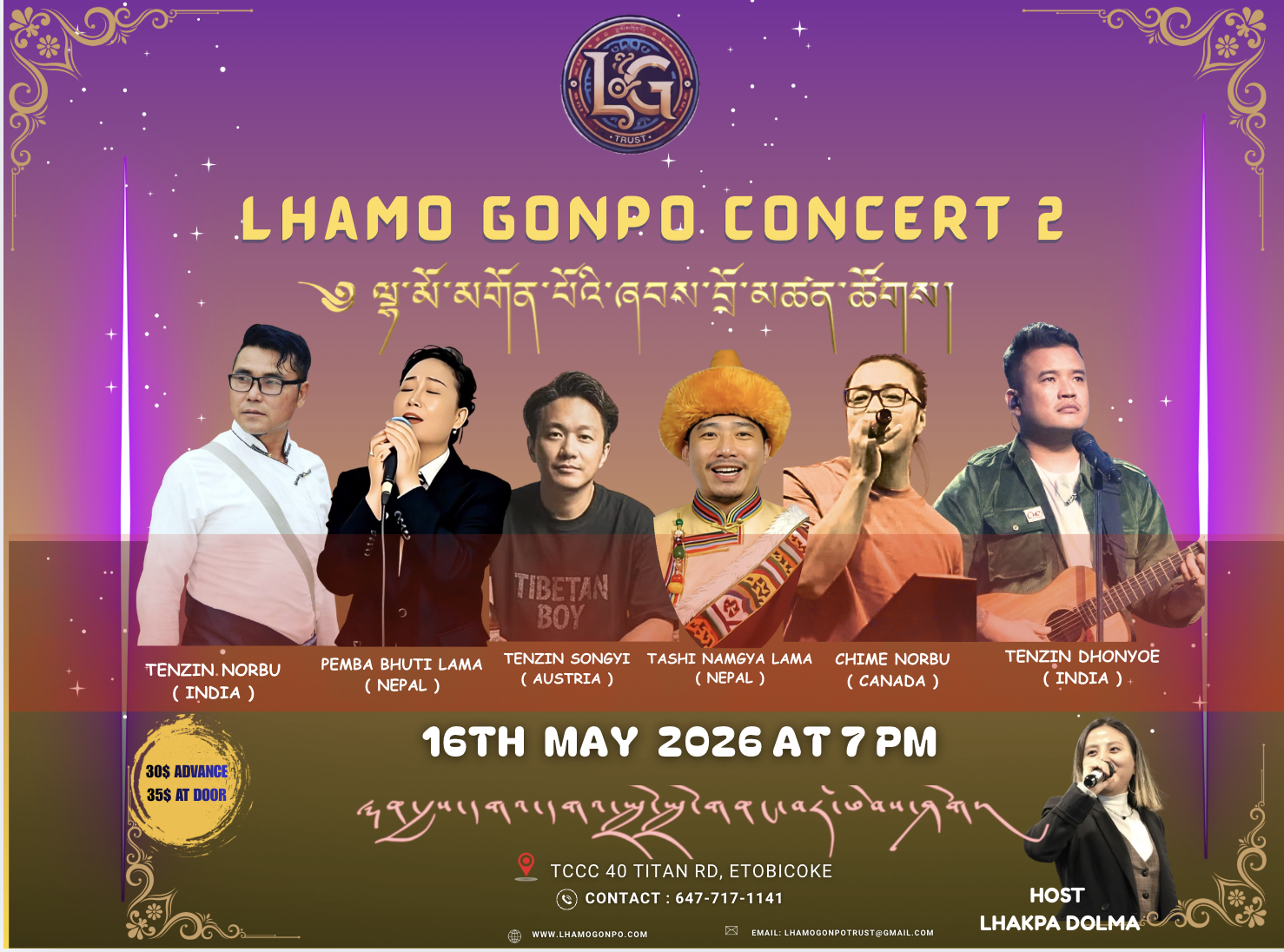 LHAMO GONPO will be organizing its Second major concert in Toronto inviting tibetan top singers around the world to promote tibetan culture and artist. It will be the biggest concert in tibetan community so far in Canada.